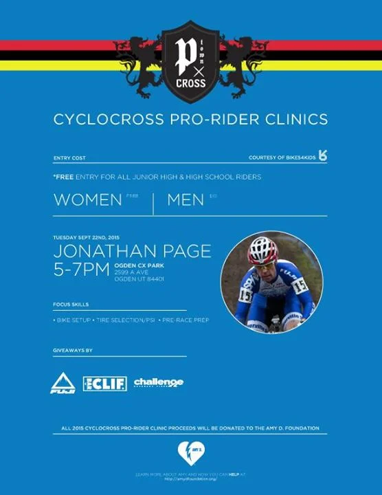 Tuesday, September 22nd from 5-7pm at the Ogden CX Park. Come check out the new park and learn from one of, if not THE best 'cross racer America has ever produced!
